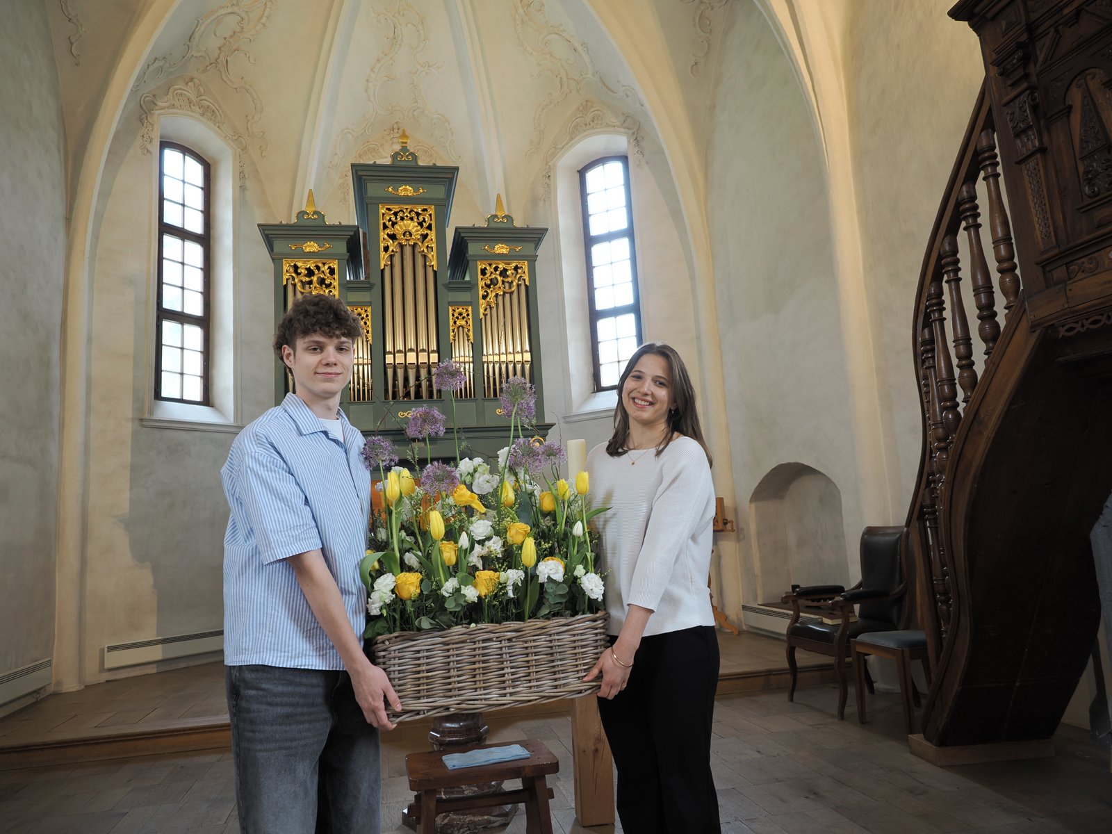Bild: Jung und Mesmerin, bzw. Mesmer: Janina Grob und Janis Pitschi in der Kirche Malans.
