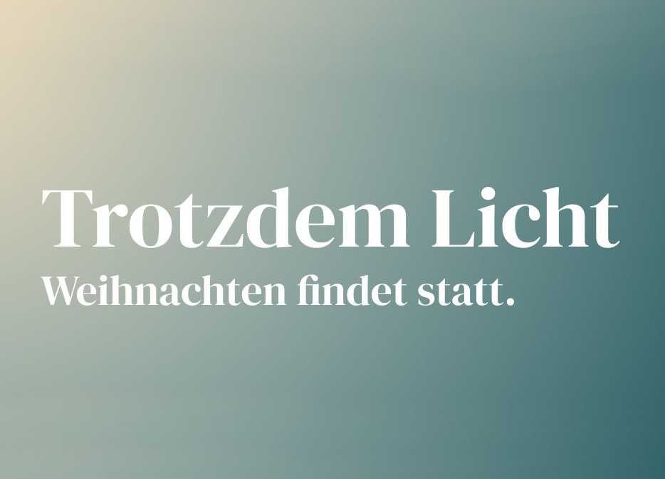 "Trotzdem Licht" ruft dazu auf, ein "ganz anderes Weihnachtsfest" zu feiern: Dass in der Geburt eines Kindes vor 2000 Jahren sich Himmel und Erde berührten, bewege Menschen bis heute. Auch dass Engel die Armut des Stalls mit ihrem Licht füllten. "Möge dieses Licht auf Sie überspringen. Ihnen einen Weg zeigen. Ihnen Vertrauen schenken. Denn das Kind atmet Frieden. Für Sie. Für alle, die Ihnen lieb sind."