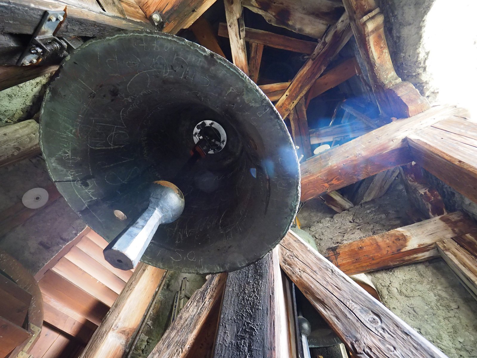Bild: Blick in den Glockenturm von Splügen. Ob am 9. März auch diese Glocken für die Menschen in der Ukraine läuten werden, entscheidet der örtliche Kirchenvorstand.
