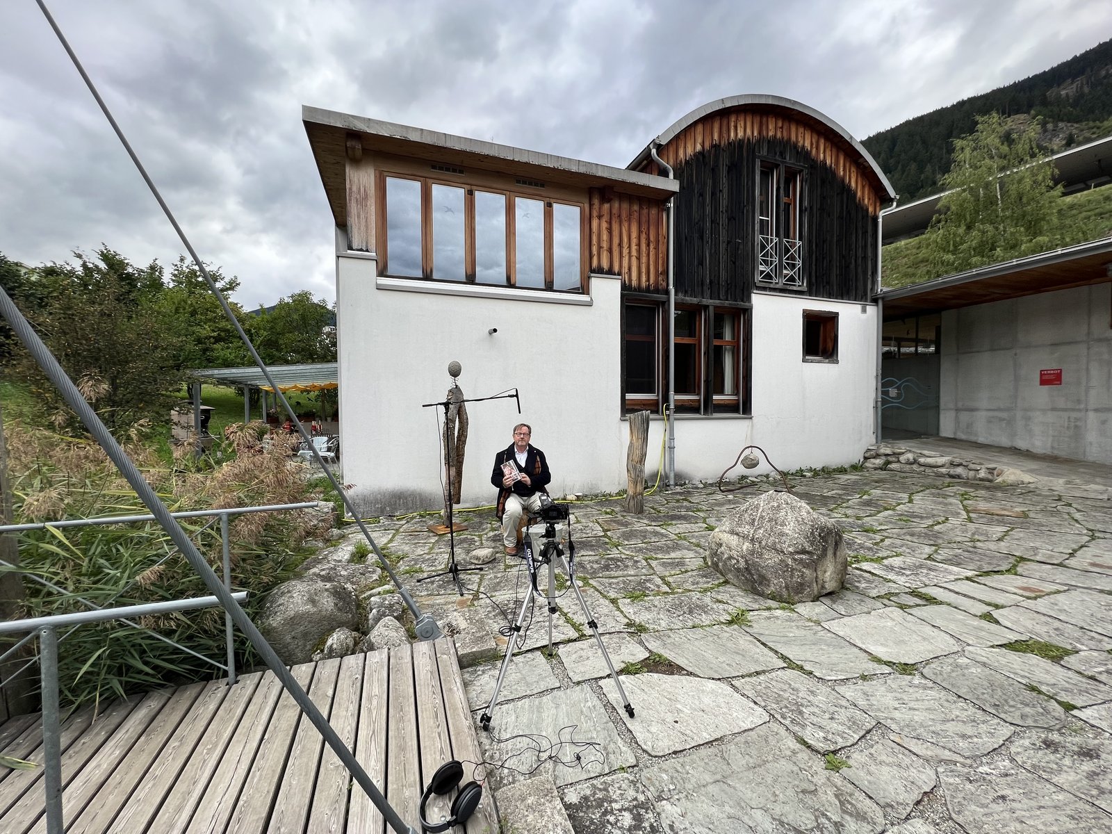 Bild: Aufnahme von Kirchenrat Christoph Zinggs Beitrag zum Mutmachkalender der EKS im Gemeindezentrum Aua Viva in Disentis. Eine Sanierung des Biotops steht an.
