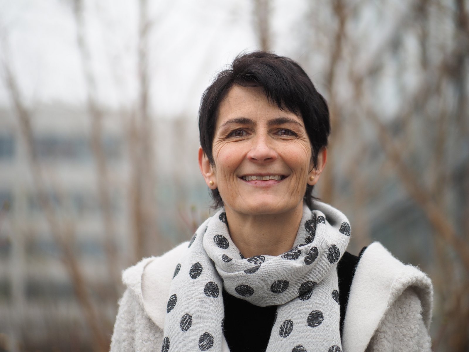 Bild: Renata Aebi, Spitalseelsorgerin und Geschäftsführerin des Berufsverbands Seelsorge im Gesundheitswesen, vor dem Kantonsspital in Chur. Dem Kirchenrat sind die Vernetzung und die Rahmenbedingungen der Seelsorge im Gesundheitswesen wichtig.