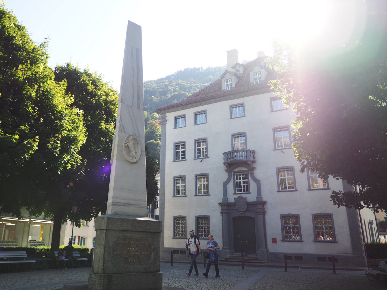 Bild: Im Jahr 2024 feiert der Kanton Graubünden den 500. Jahrestag des Zusammenschlusses der Drei Bünde, welcher den Grundstein für den heutigen Kanton Graubünden legte. Im Bild: das Regierungsgebäude in Chur mit dem Vazeroldenkmal.
